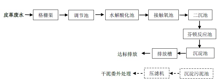 制革廠廢水排放量大、pH值高、色度高、污染物種類繁多、成分復(fù)雜。主要污染物有重金屬鉻、可溶性蛋白質(zhì)、皮屑、懸浮物、丹寧、木質(zhì)素、無機(jī)鹽、油類、表面活性劑、助劑、染料及樹脂等 。